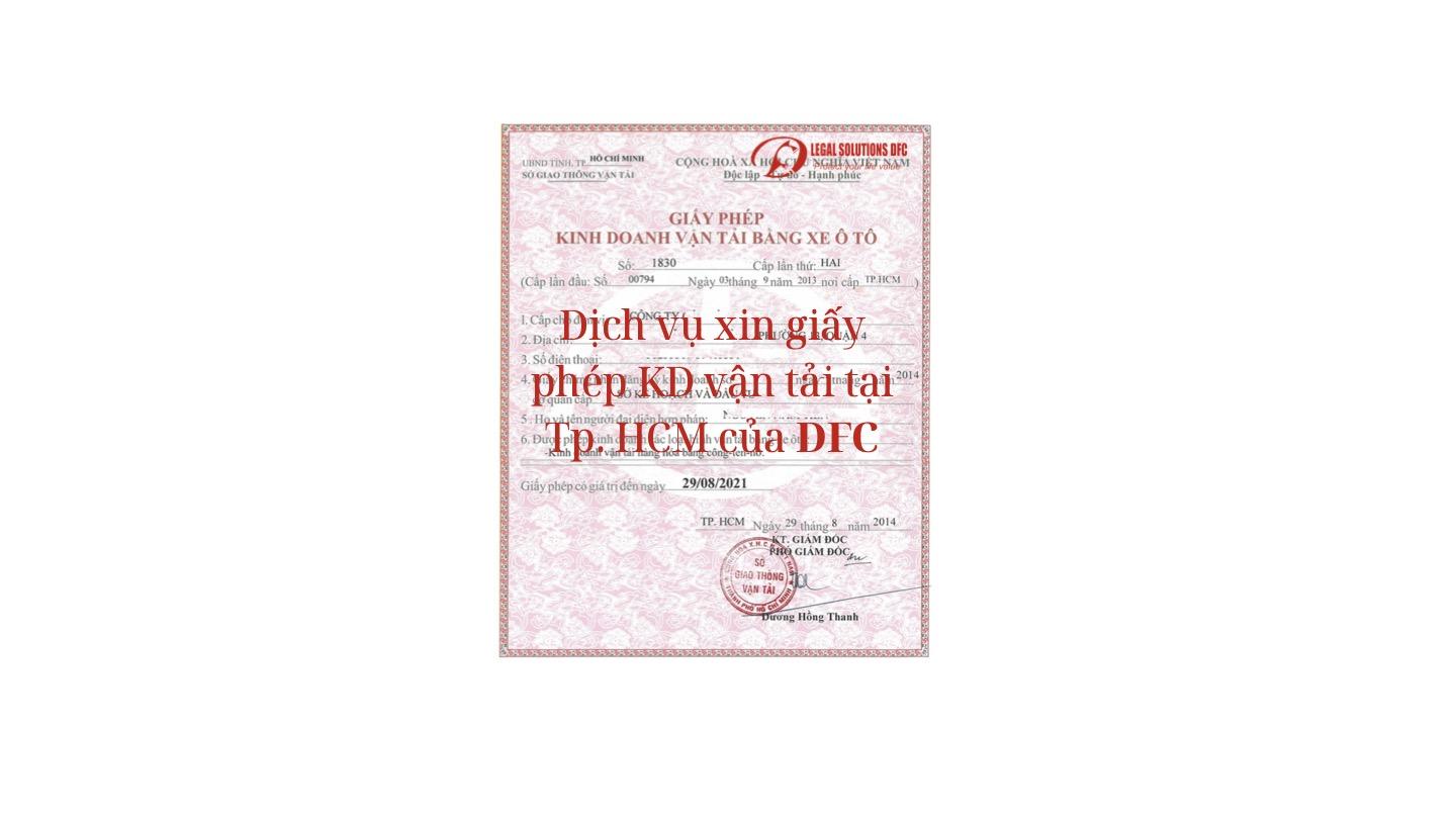 DFC cung cấp dịch vụ làm giấy phép kinh doanh vận tải tại TP. Hồ Chí Minh trọn gói – nhanh chóng, tiết kiệm, đúng quy định pháp luật. Liên hệ tư vấn miễn phí ngay hôm nay!